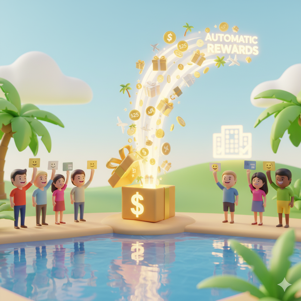 The system automatically delivers a digital reward (starting with $25 dining cards).
